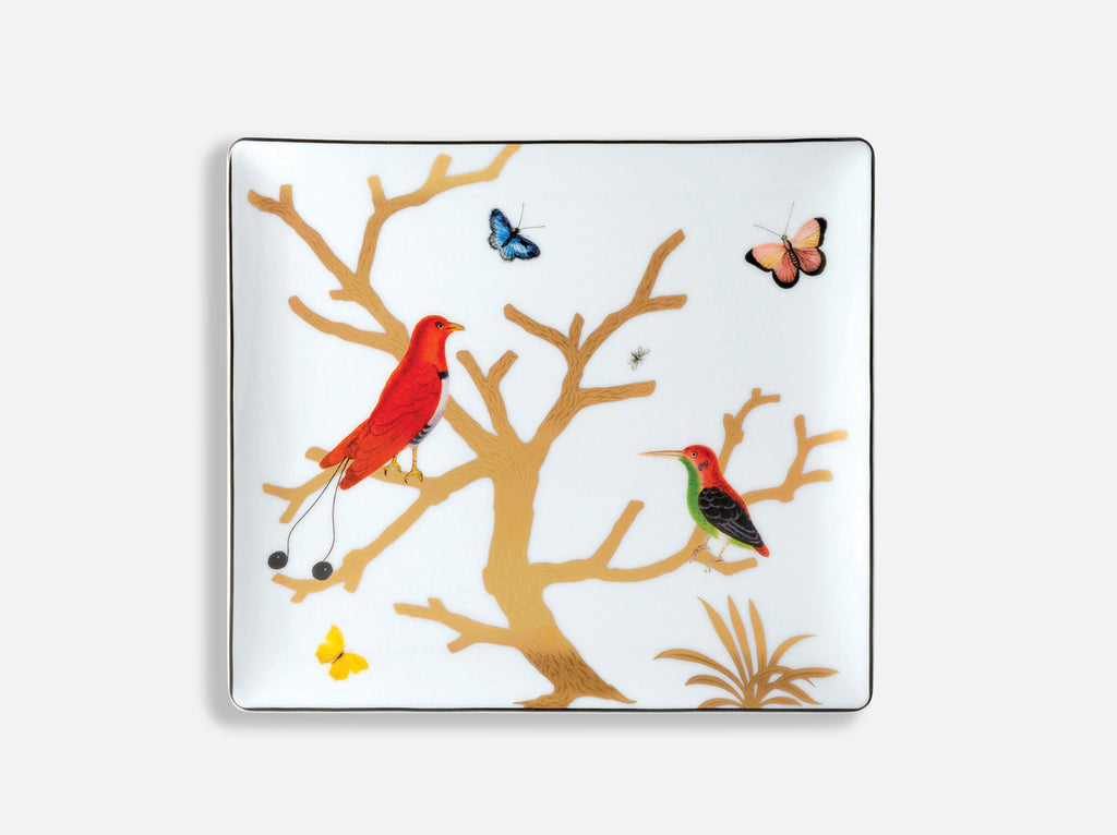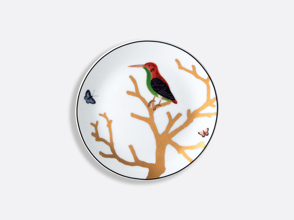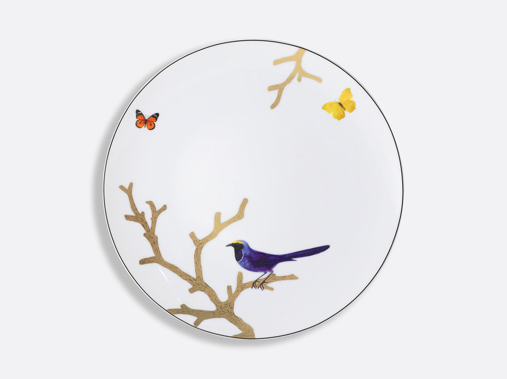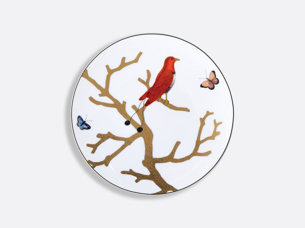Inspired by the curiosities cabinets in fashion in the 16th and 17th centuries, the decor is available on a complete service where the birds, in shimmering colors, are perched on stylized trees, reminiscent of the corals so sought after at the time, and treated in raised gold.