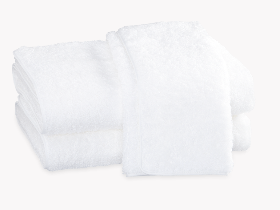 In the Cairo collection, a simple design is simply beautiful. Its pure, plush 100% long-staple cotton terry is unadorned but for a piped edge. You can opt for white trimmed with a pop of color, or colored terry with piping to match.