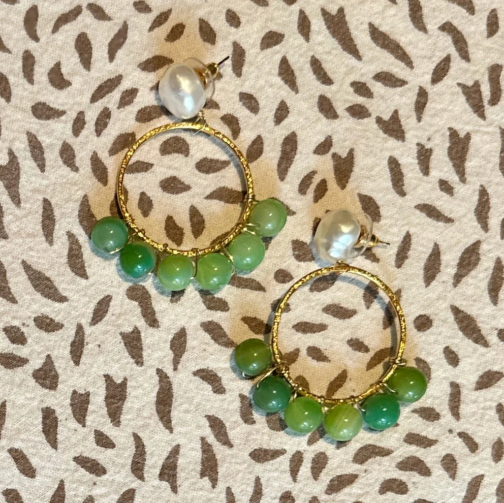 Freshwater pearls, apple green agate, 14k gold vermeil, and 14k gold plate post.