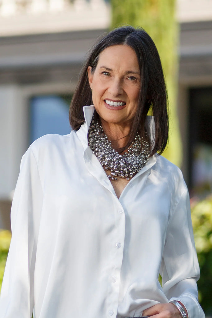 This stunning necklace is made of multiple strands of faux silver beads or faux ivory pearl beads strung together.