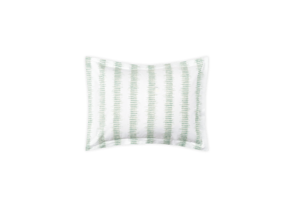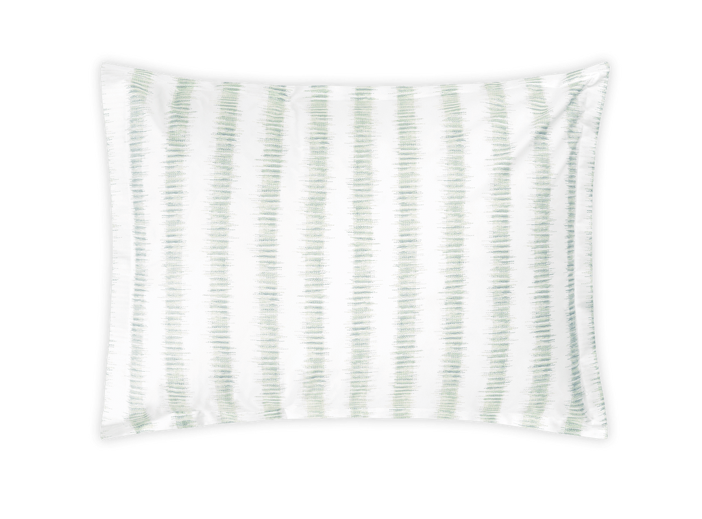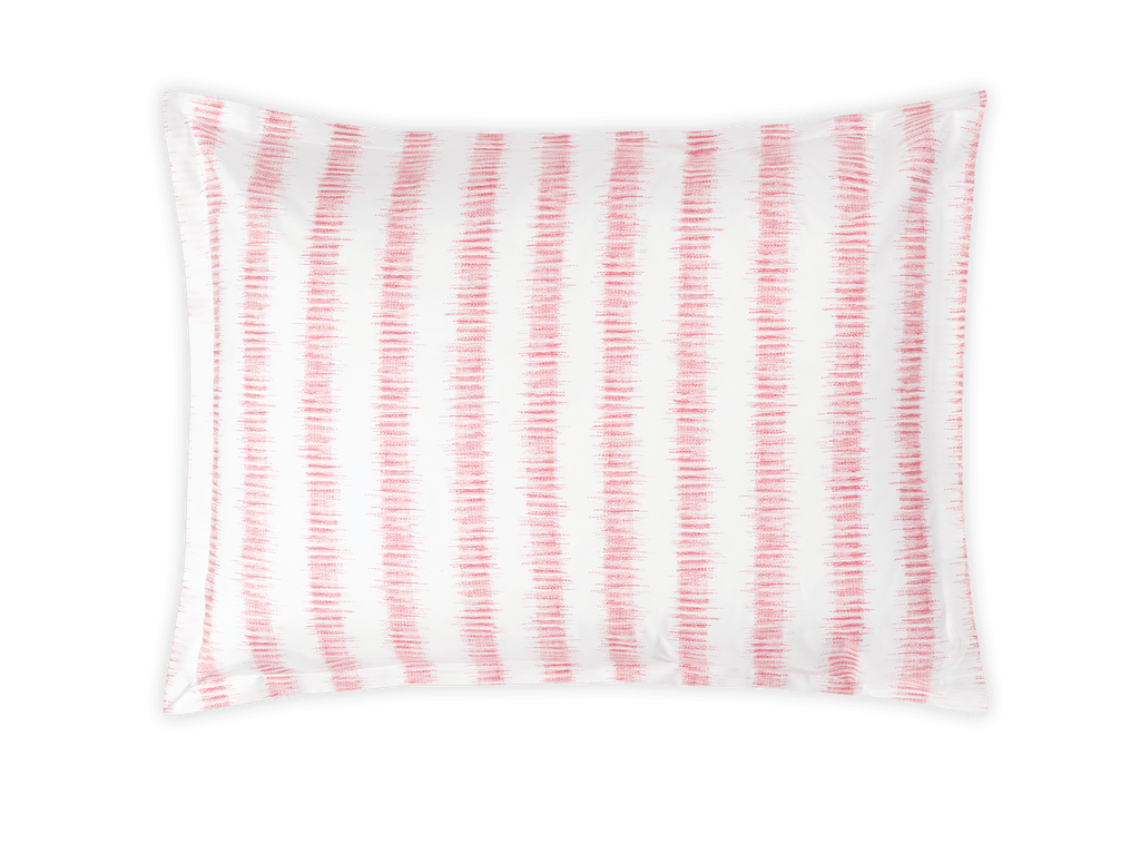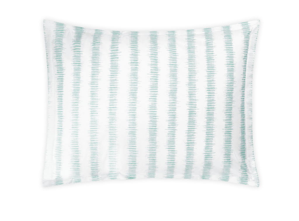 Attleboro, a print drawn from an archival Schumacher design, mimics the distinctive look of dyed textiles. Ikat-like blurred strokes are arranged in hazy stripes and printed on 500 thread count Luca Egyptian cotton percale.