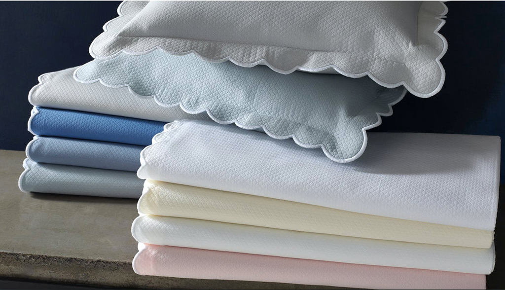Full of charm and wit, this diamond-patterned pique is the equivalent of the perfect white shirt—in every color. Timeless, textured and always polished, Diamond Pique is made from our easy-care 70% cotton, 30% polyester blend. The small amount of polyester ensures that no ironing is required, while the cotton gives this classic style its luxurious weight. Diamond Pique is finished with an embroidered scallop white trim.