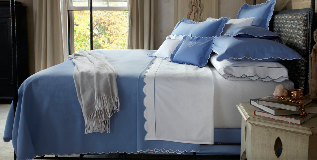 Full of charm and wit, this diamond-patterned pique is the equivalent of the perfect white shirt—in every color. Timeless, textured and always polished, Diamond Pique is made from our easy-care 70% cotton, 30% polyester blend. The small amount of polyester ensures that no ironing is required, while the cotton gives this classic style its luxurious weight. Diamond Pique is finished with an embroidered scallop white trim.