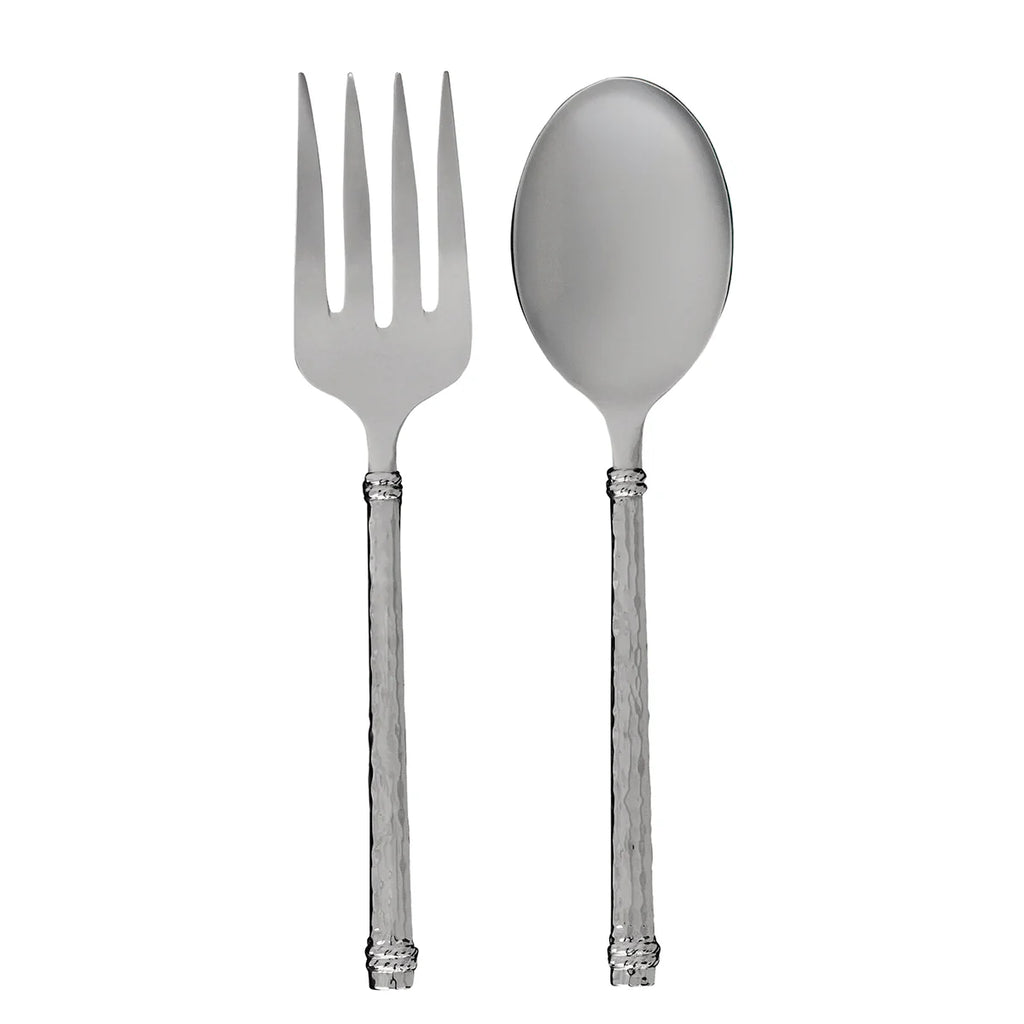 This striking set gleams with a distinctive dimpling effect in hammered stainless steel, polished to brilliance, and finished with a tidy trimming of our signature thread motif. Sophisticated and stunning, our Graham serving pieces are a masterclass in casually formal entertaining—perfect for everyday settings and holiday feasts.