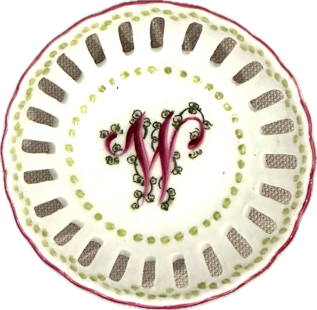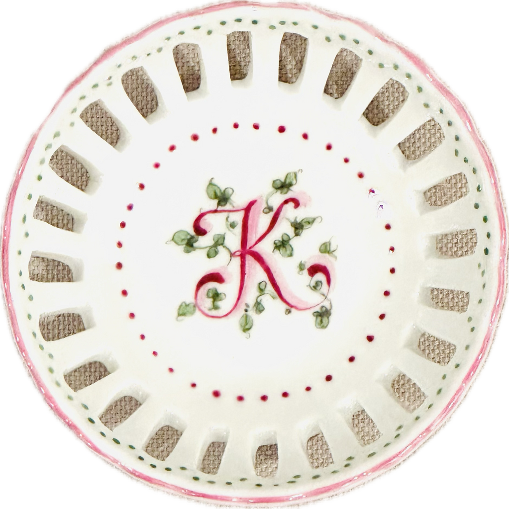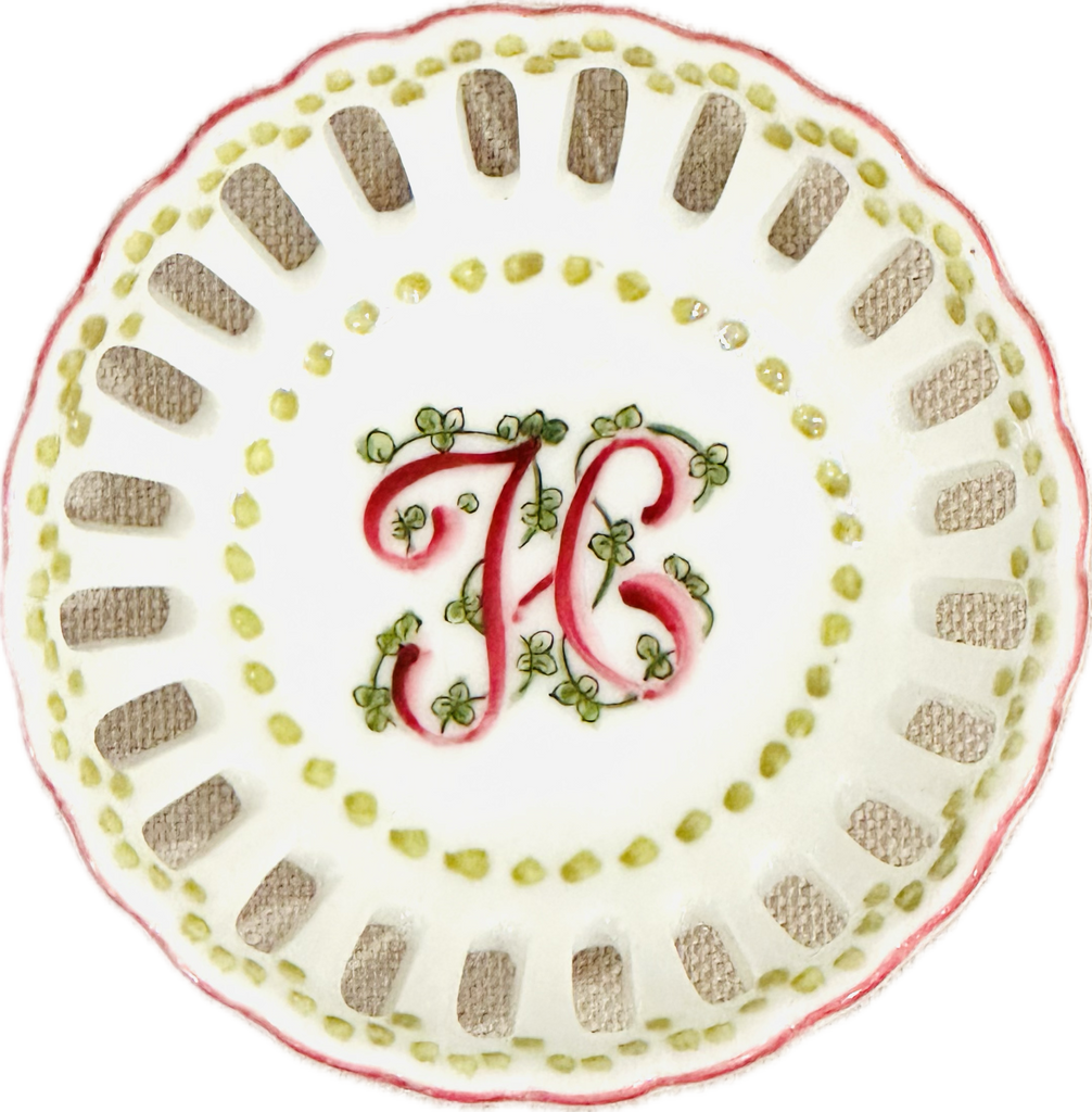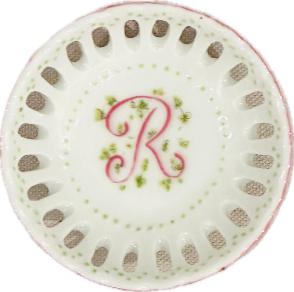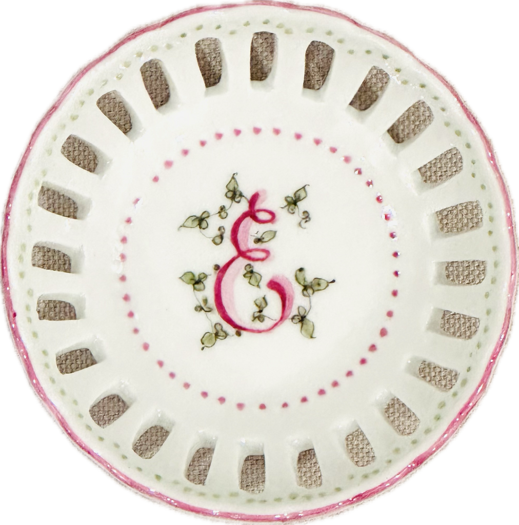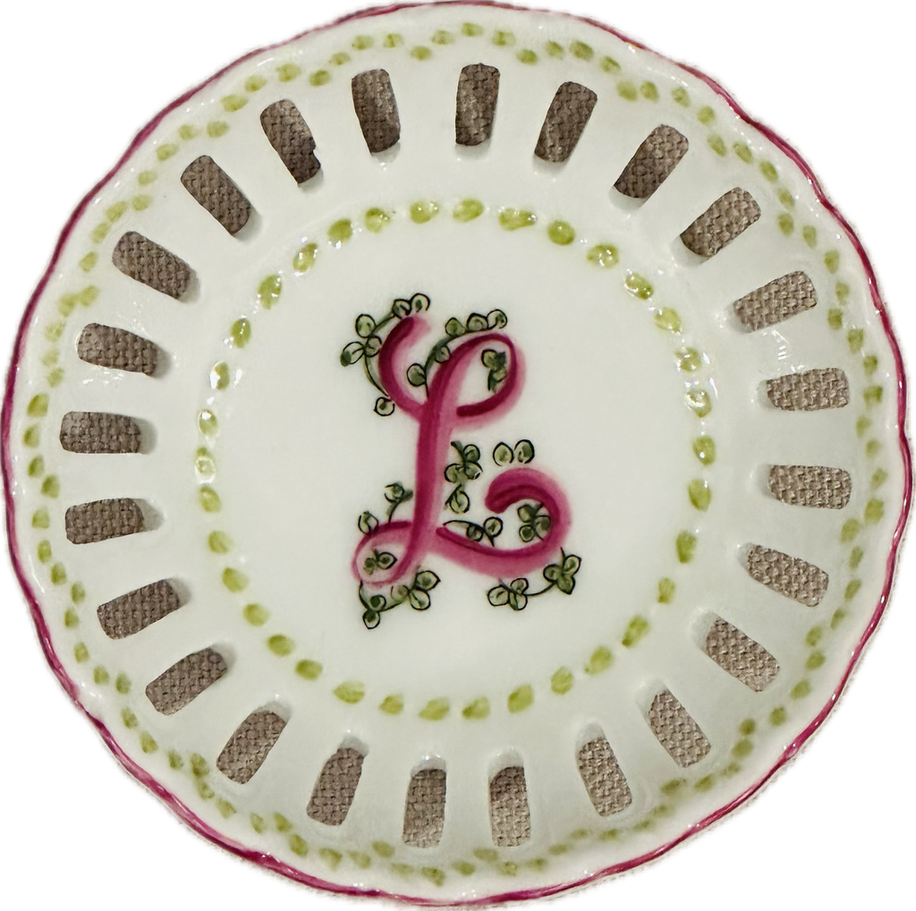 This hand painted bonbon dish is perfect for every special occasion - from new baby to debutante to bride! Hand painted in the USA. Each dish is hand painted, so expect slight variation in coloration.