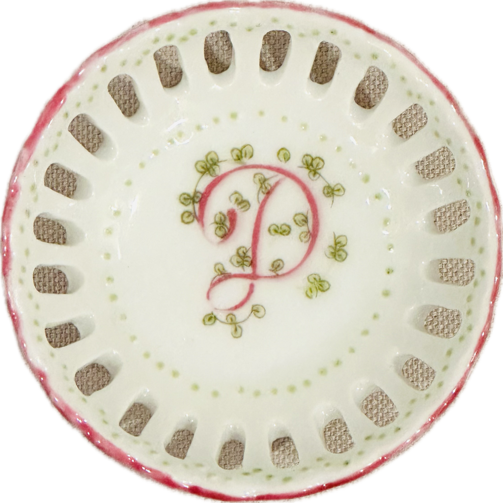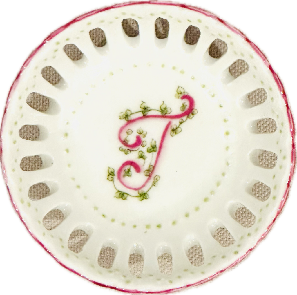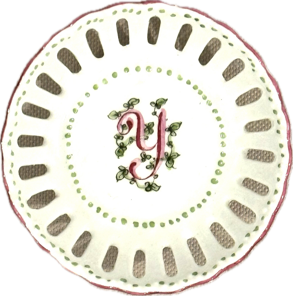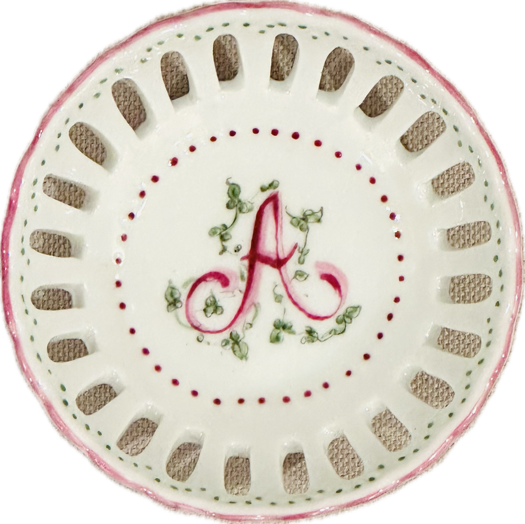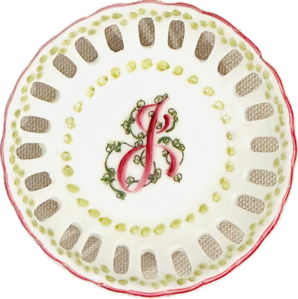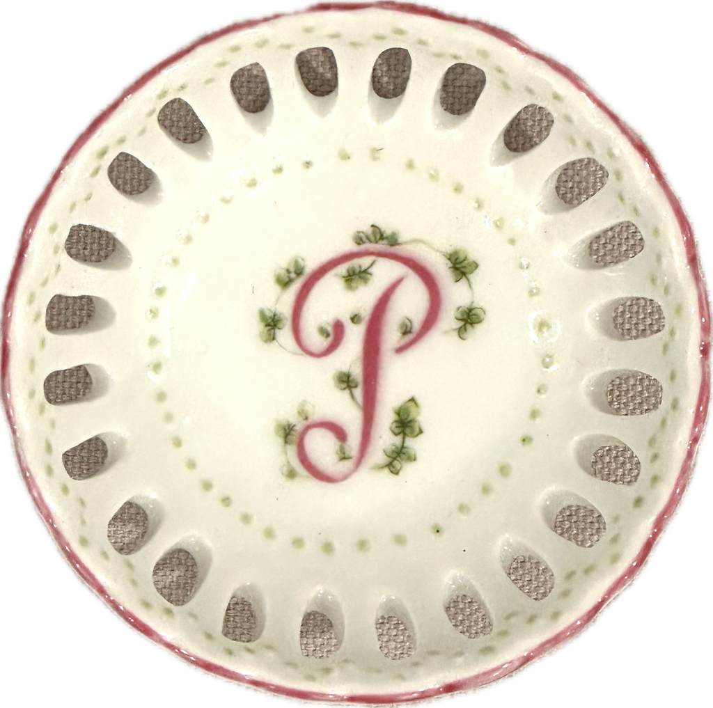 This hand painted bonbon dish is perfect for every special occasion - from new baby to debutante to bride! Hand painted in the USA. Each dish is hand painted, so expect slight variation in coloration.