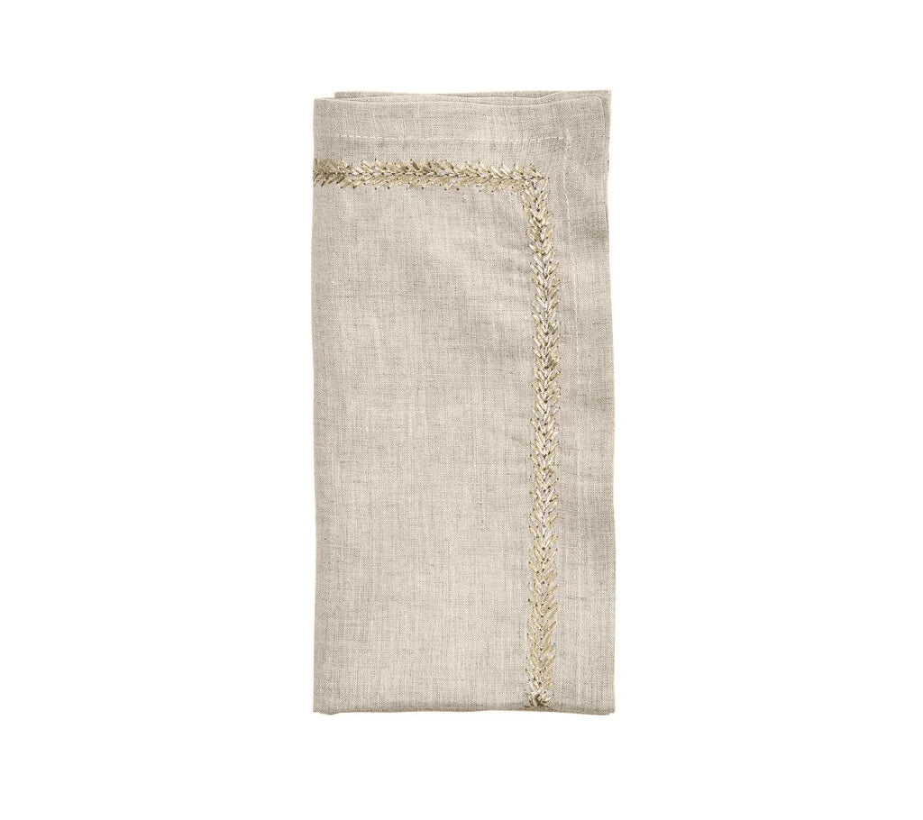 The Jardin Napkin features a trim with intricate embroidery with a subtle shimmer. This elegant napkin is versatile and can be used in both casual and formal table settings.