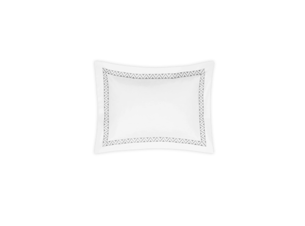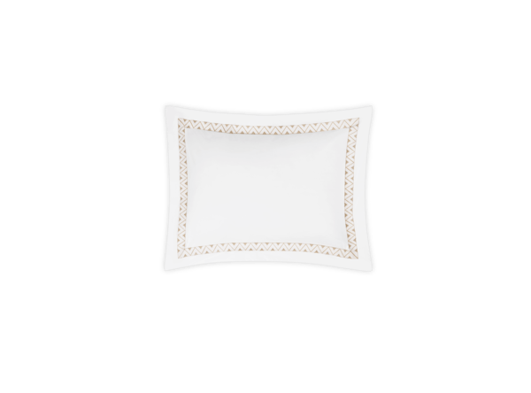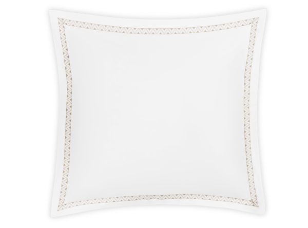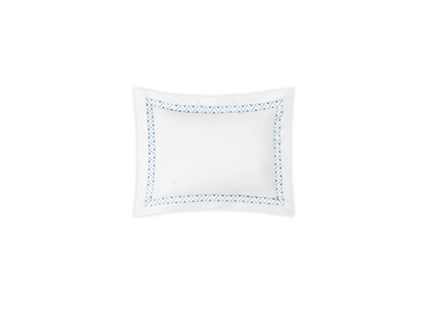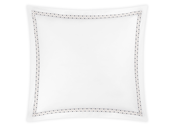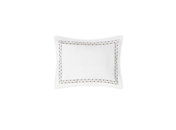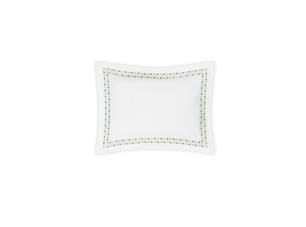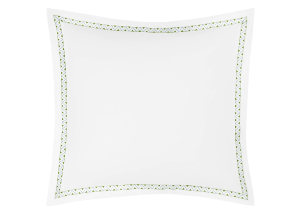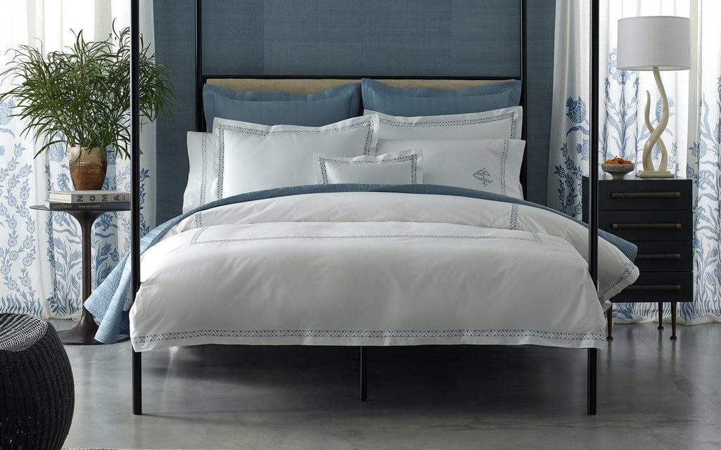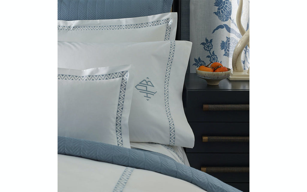 Prado creatively combines a chic Schumacher design and a classic Matouk construction, with breathtaking results. We've placed the Prado pattern on our crisp 520 thread count Ceylon percale as we would a tape detail, but here the pattern is fully embroidered instead. The finished product has a crisp, tailored look with a delicious pop of colorful decoration.