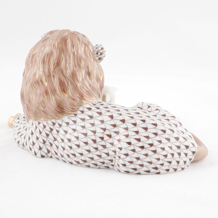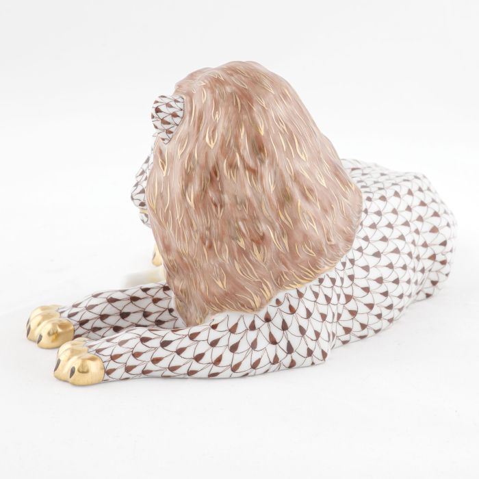 A symbol of peace and harmony, Herend has created a beautifully poignant interpretation of the lion and lamb. The lion, painted in an earthy chocolate fishnet that speaks to his strength and power, has draped his tail protectively around his sweet companion while the lamb, painted in natural coloration to allow for the full expression of his features, is looking up at the lion with innocence and adoration.