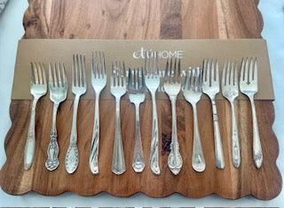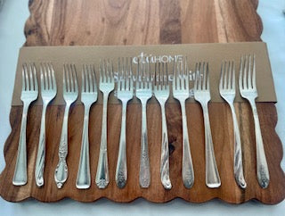 Bring an authentic vintage touch to your well-dressed table. Each piece of flatware is meant to be mixed and matched for a unique and unpredictable look. Due to the found nature of this item, each piece of silverware will differ in size, coloring, pattern, and look.